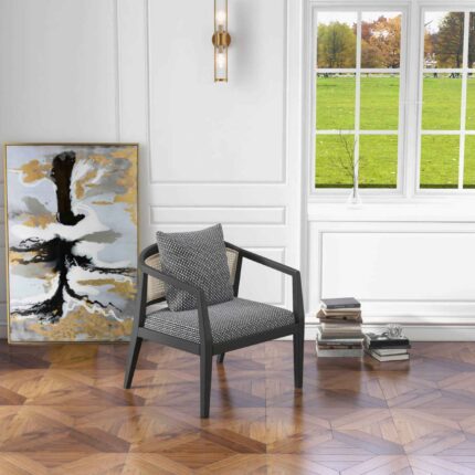 Woven Back Wooden Textured Black Accent Chair – Black 16897