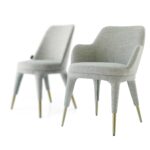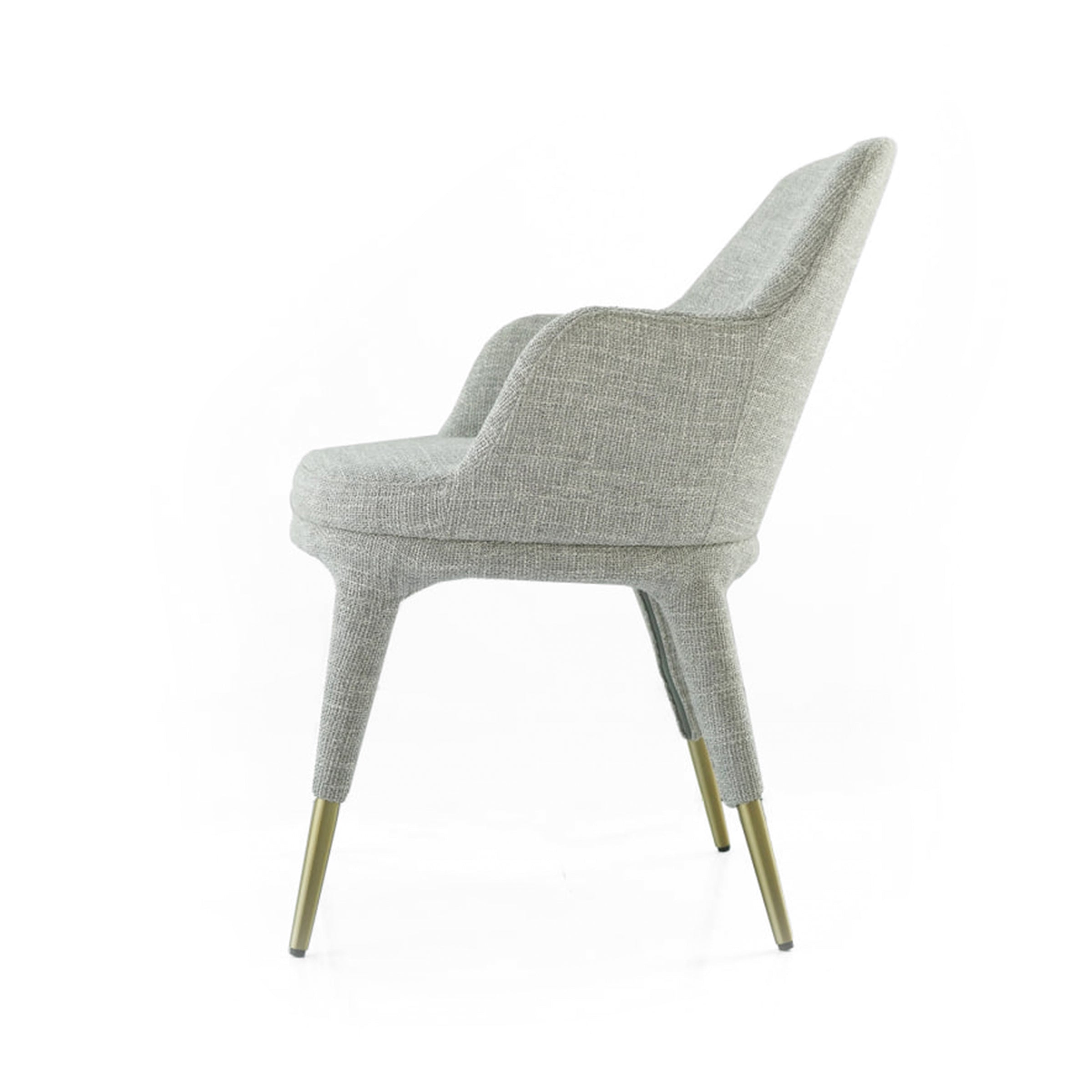 Indulge in luxury with our dining chair BC688. The brushed champagne gold powder coating finish on the base and clean curves give it a sophisticated touch. The grey upholstery of general foam and fabric exudes elegance, while the brushed brass adds an exclusive touch. Elevate your dining experience with this chair.