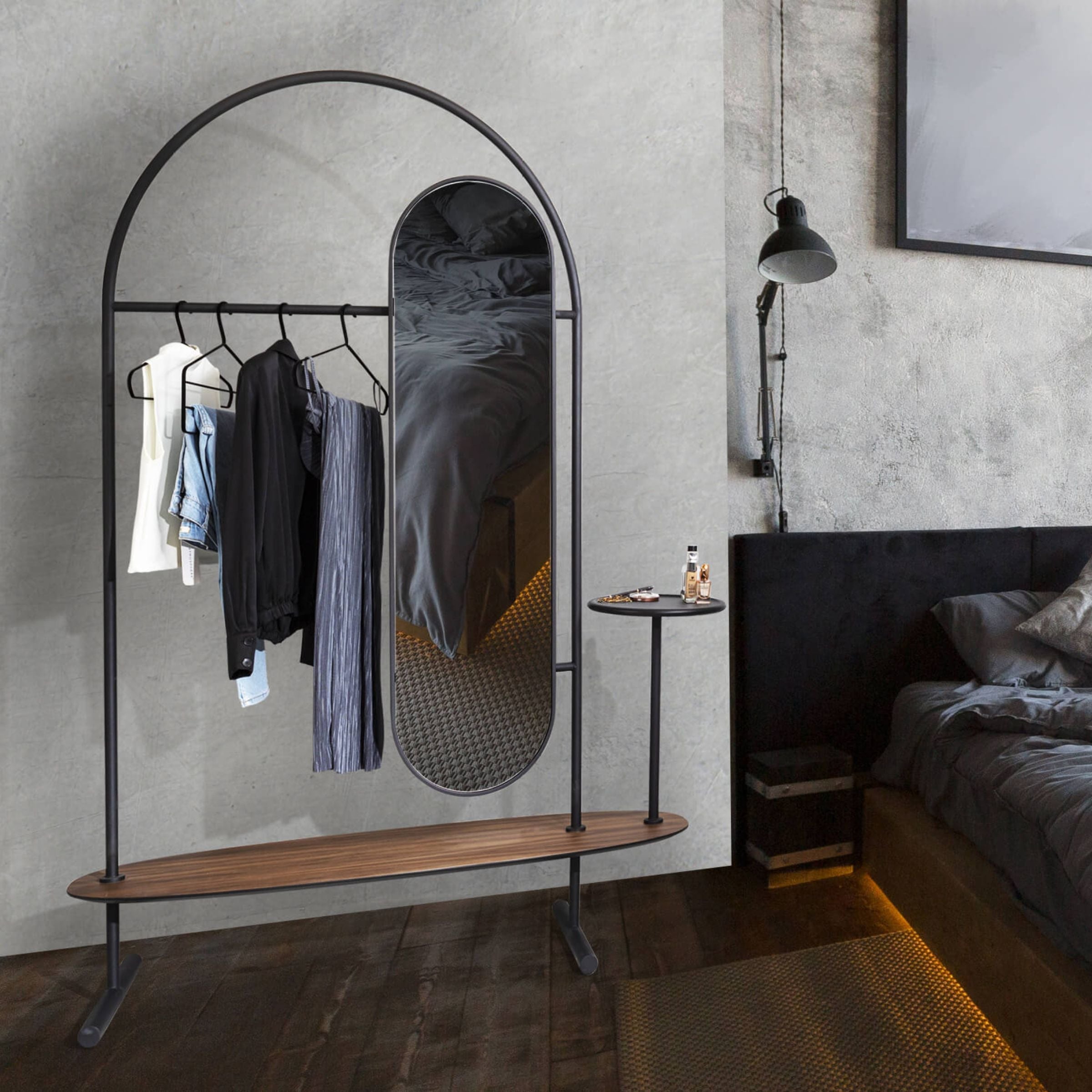 Black metal body, American walnut base, Anthracite top, Full-length mirror